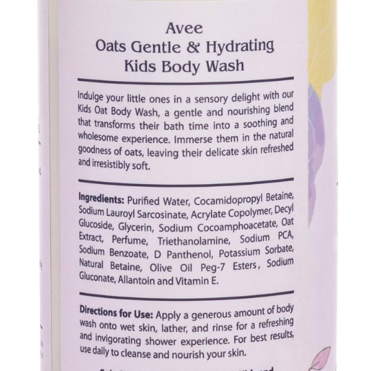 Give your child the nourishing bath time with Avee Kids Body Wash, enriched with Oats Extract, Vitamin B5 & E. Specially designed for delicate, growing skin — this pH Balanced formula gently cleanses without altering skin's natural texture while restoring hydration and softness, without any parabens or sulfates.
